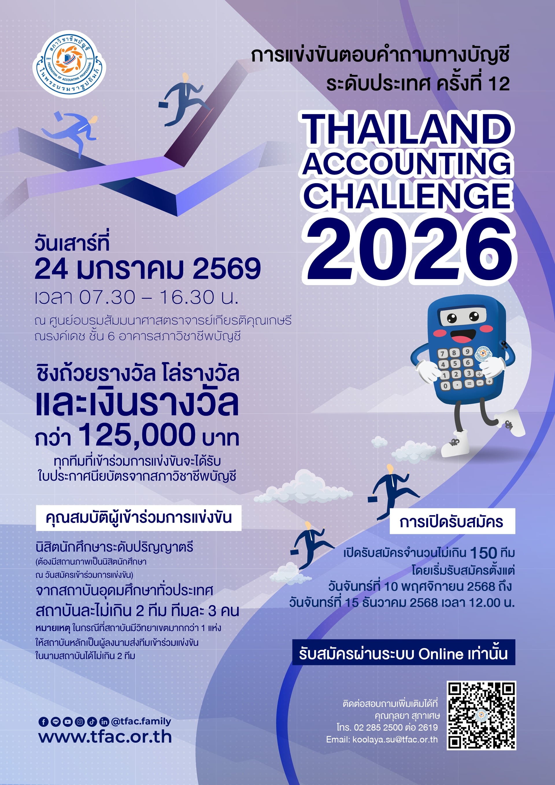 • กลับมาอีกครั้ง..กับการแข่งขันตอบคำถามทางบัญชีระดับประเทศ ครั้งที่ 12 ประจำปี 2569 (Thailand Accounting Challenge 2026)