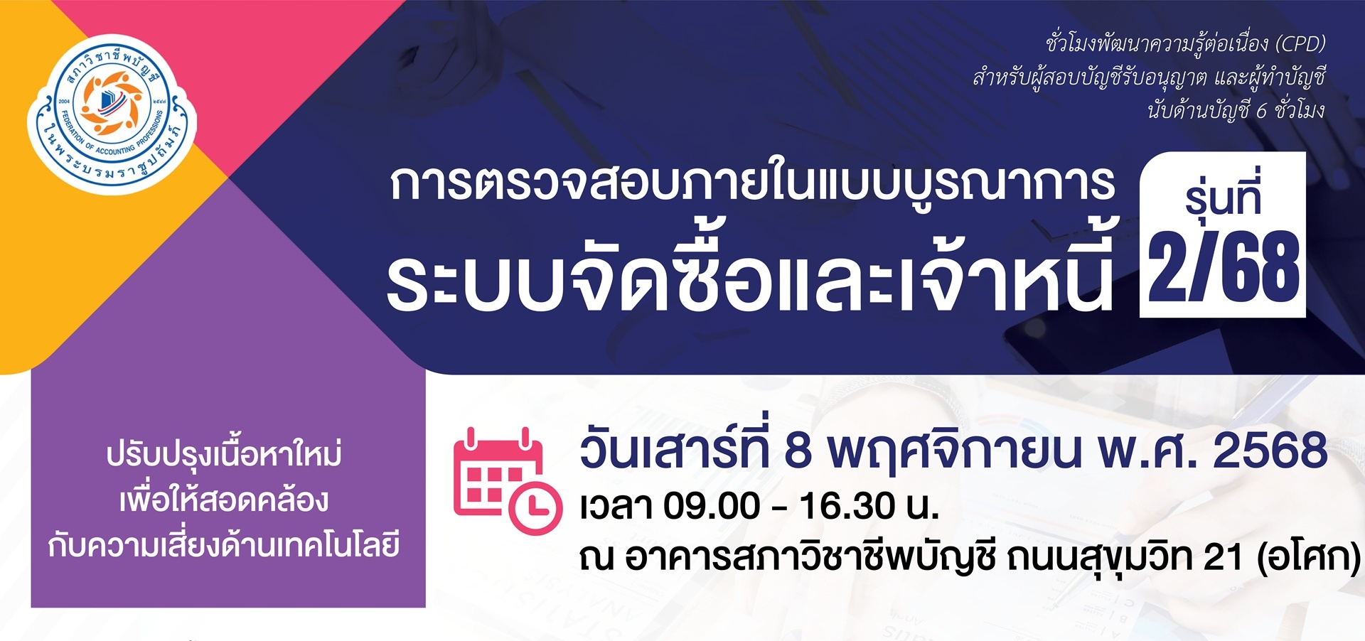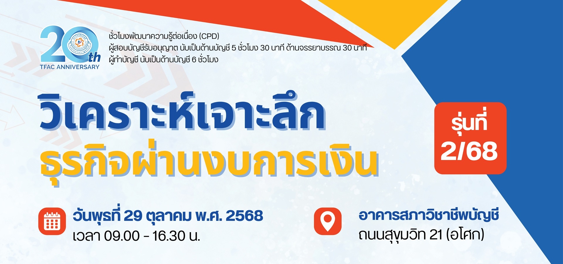 ขอเชิญนักบัญชีและนักศึกษาที่กำลังศึกษาอยู่ในระดับปริญญาตรีชั้นปี 3-4 สาขาบัญชี หรือสาขาที่เกี่ยวข้องสมัครเข้าร่วม “โครงการนักบัญชี” เพื่อมาร่วมเป็นจิตอาสาและเป็นส่วนหนึ่งในการสร้างสังคมที่เข็มแข็ง โปร่งใส และยั่งยืนไปด้วยกัน