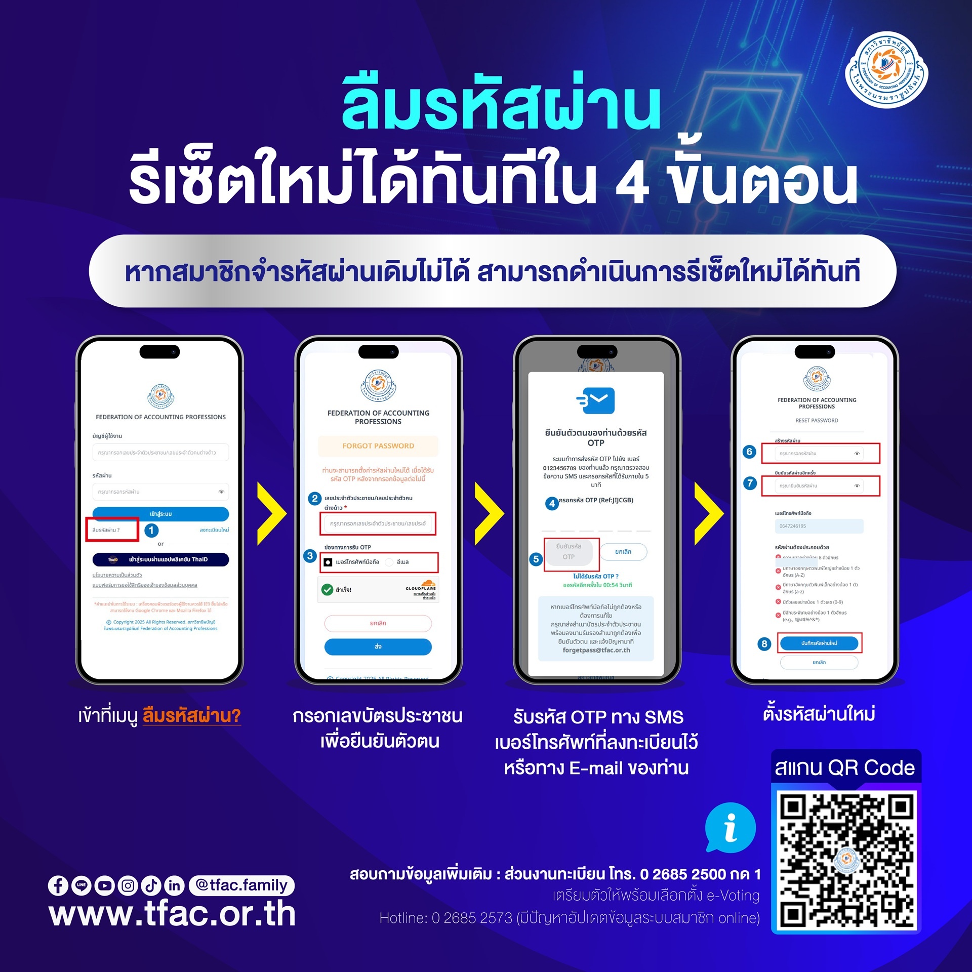 หากสมาชิกจำรหัสผ่านเดิมไม่ได้ สามารถดำเนินการรีเซ็ตใหม่ได้ทันที