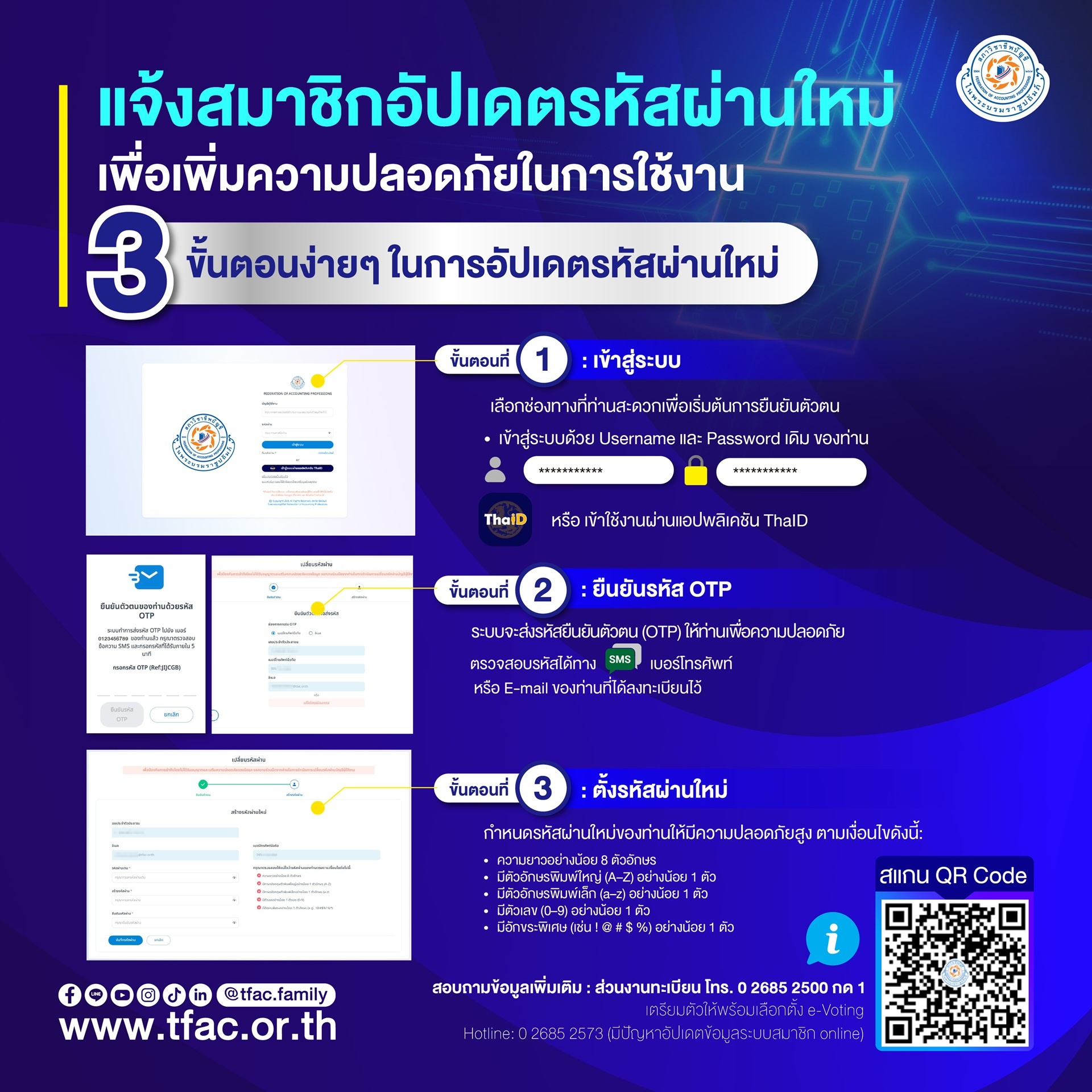 forgetpass@tfac.or.th เพื่อให้เจ้าหน้าที่ดำเนินการแก้ไขให้ โดยแนบเอกสารดังนี้: