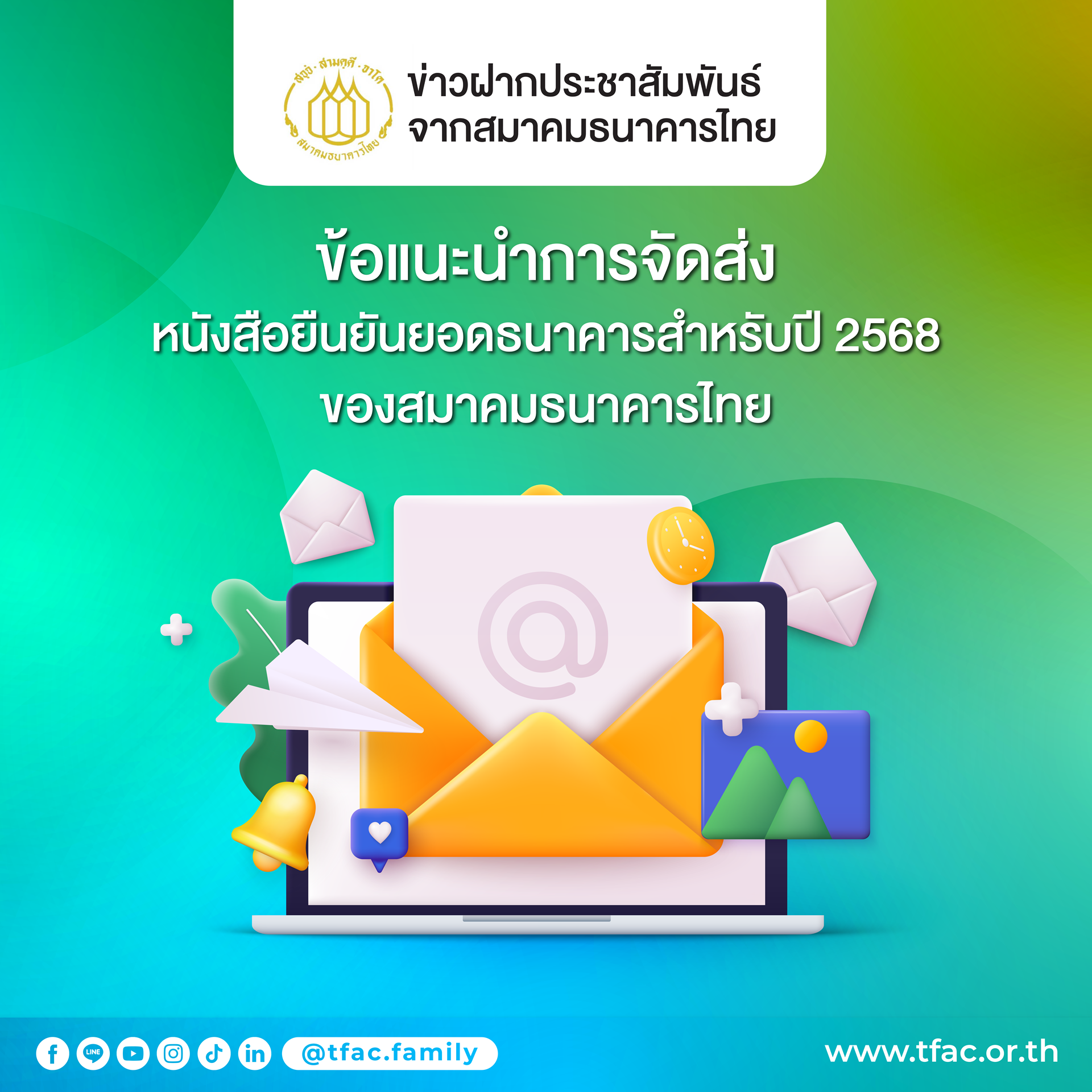 | - | ข้อแนะนำในการจัดส่งหนังสือยืนยันยอดธนาคารของสมาคมธนาคารไทย | Download | ชุดเดิมจากปี 2567 |