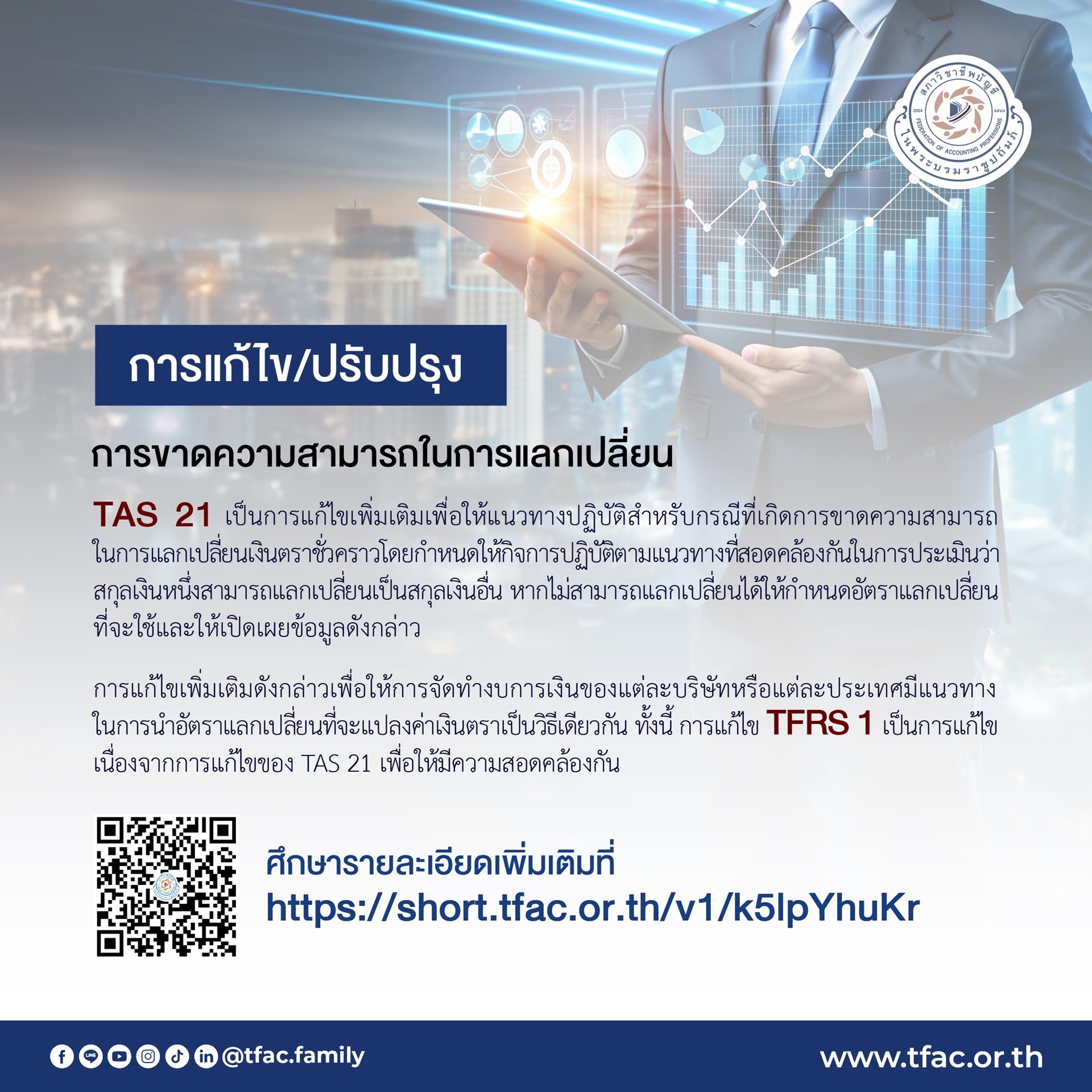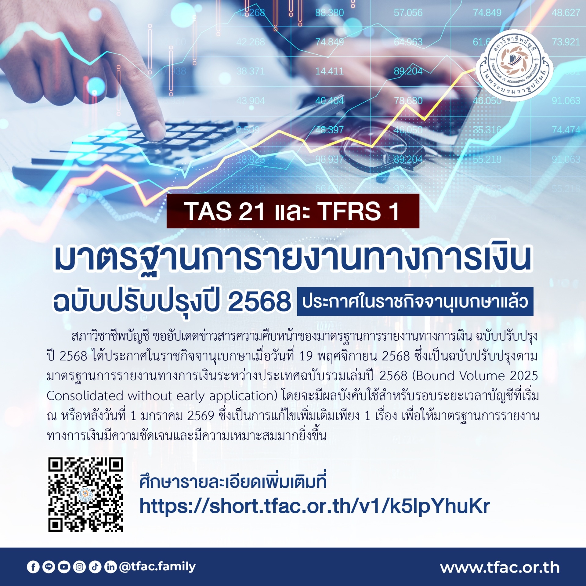 • ประกาศ! มาตรฐานการรายงานทางการเงิน ฉบับปรับปรุงปี 2568 (TAS 21 และ TFRS 1) ประกาศในราชกิจจานุเบกษาแล้ว