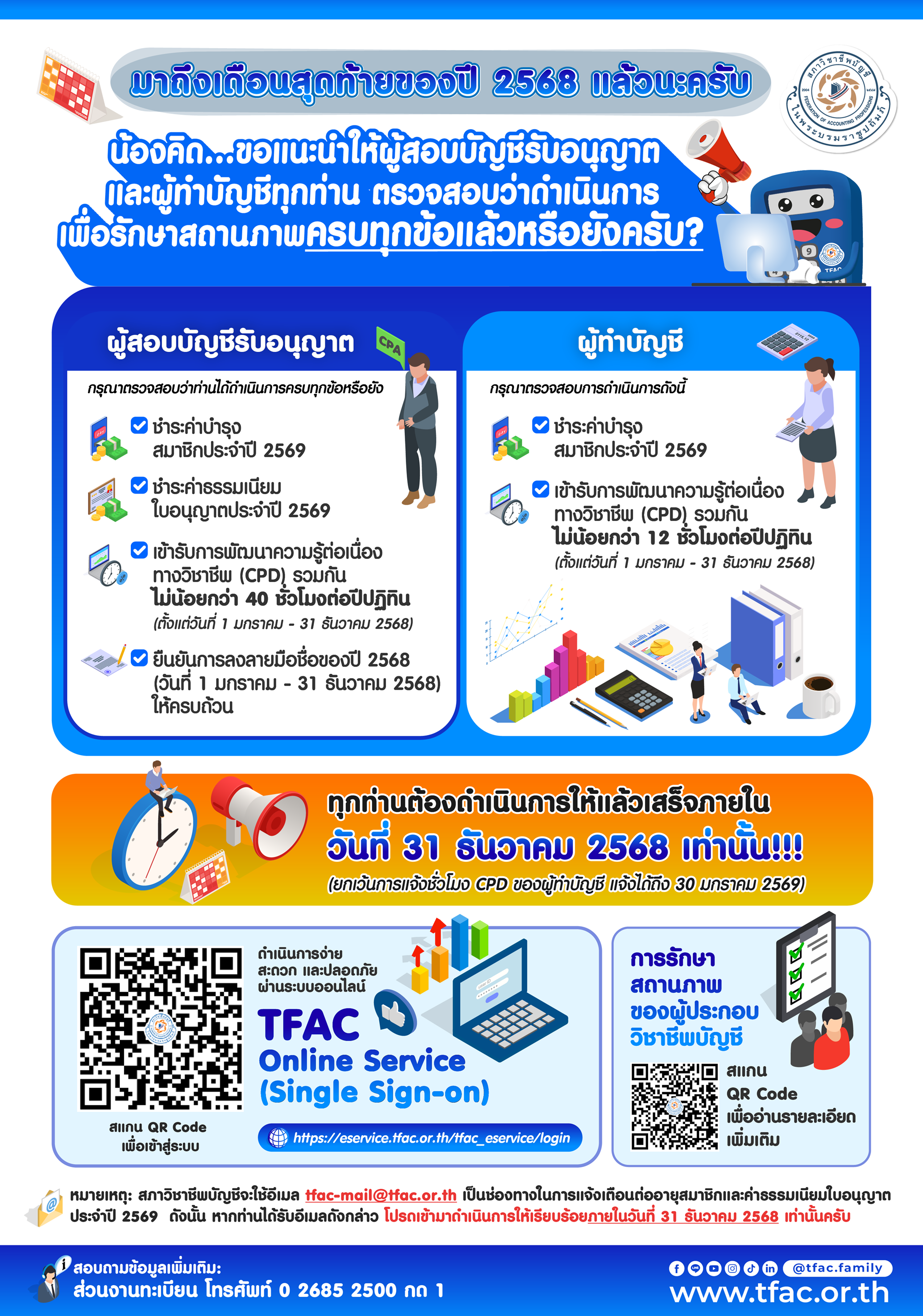 👉 เข้ารับการพัฒนาความรู้ต่อเนื่องทางวิชาชีพ (CPD) รวมกันไม่น้อยกว่า 40 ชั่วโมงต่อปีปฏิทิน (ตั้งแต่วันที่ 1 มกราคม - 31 ธันวาคม 2568)