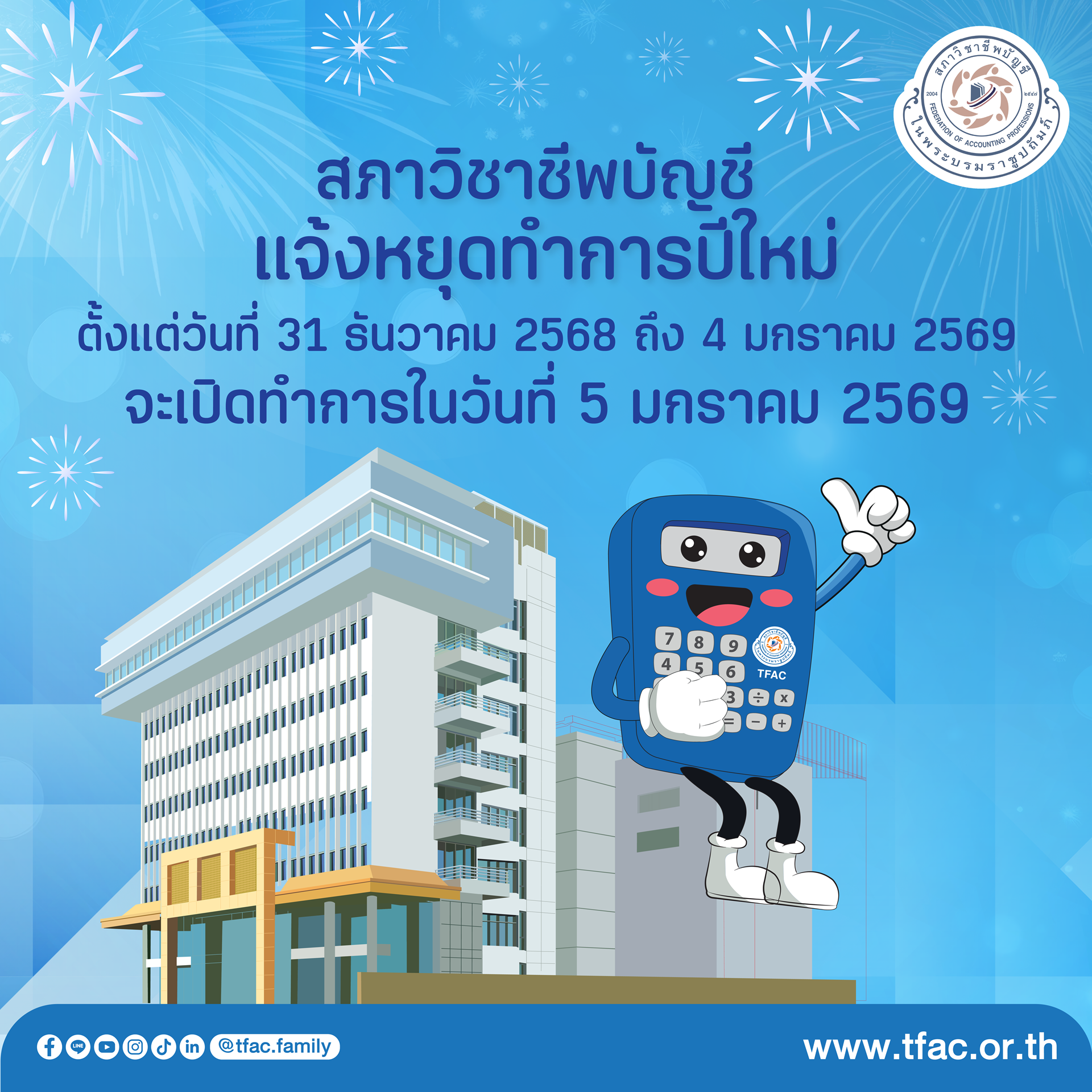 • สภาวิชาชีพบัญชี แจ้งหยุดทำการปีใหม่