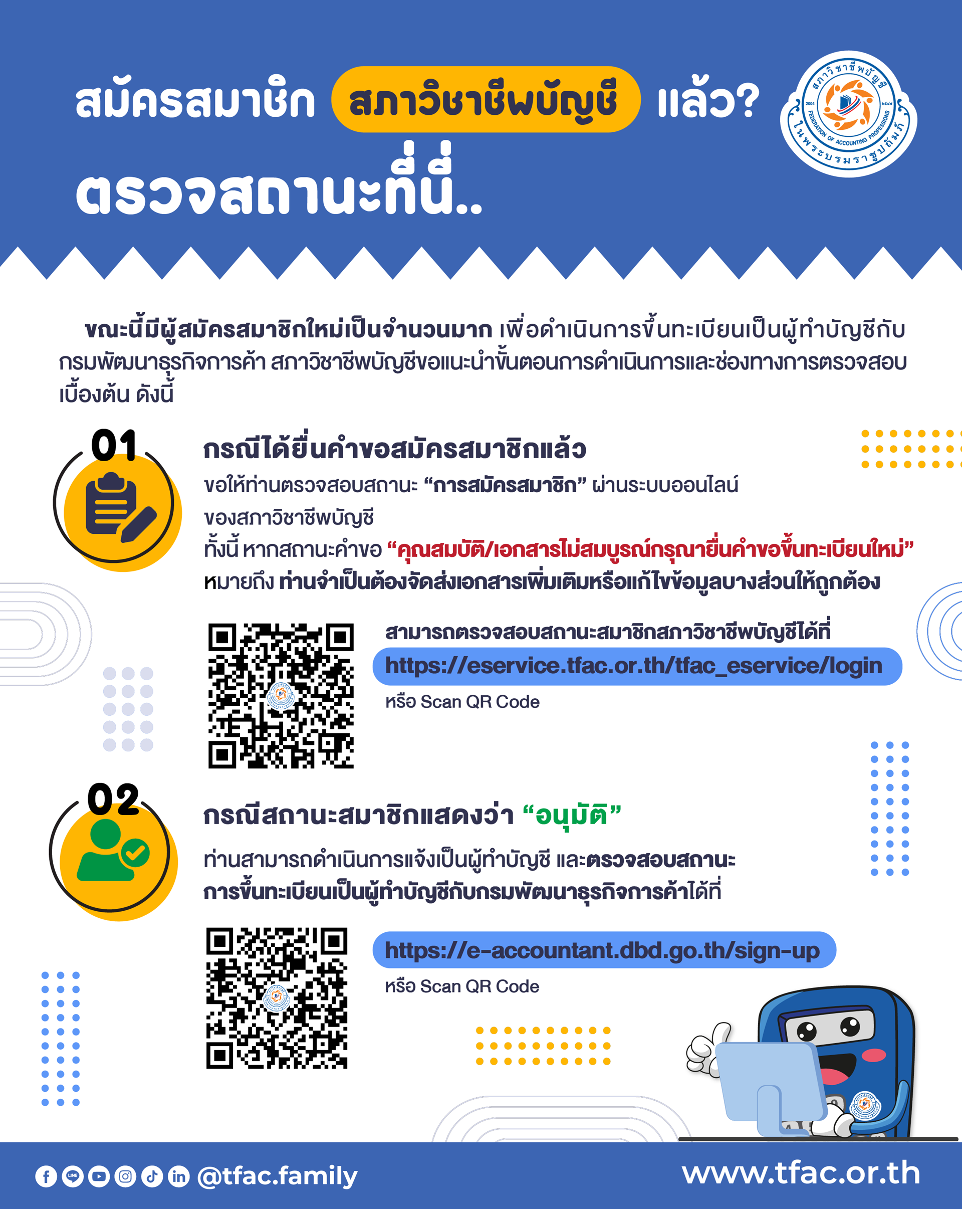 📣 แจ้งข้อมูลการสมัครสมาชิกสภาวิชาชีพบัญชี