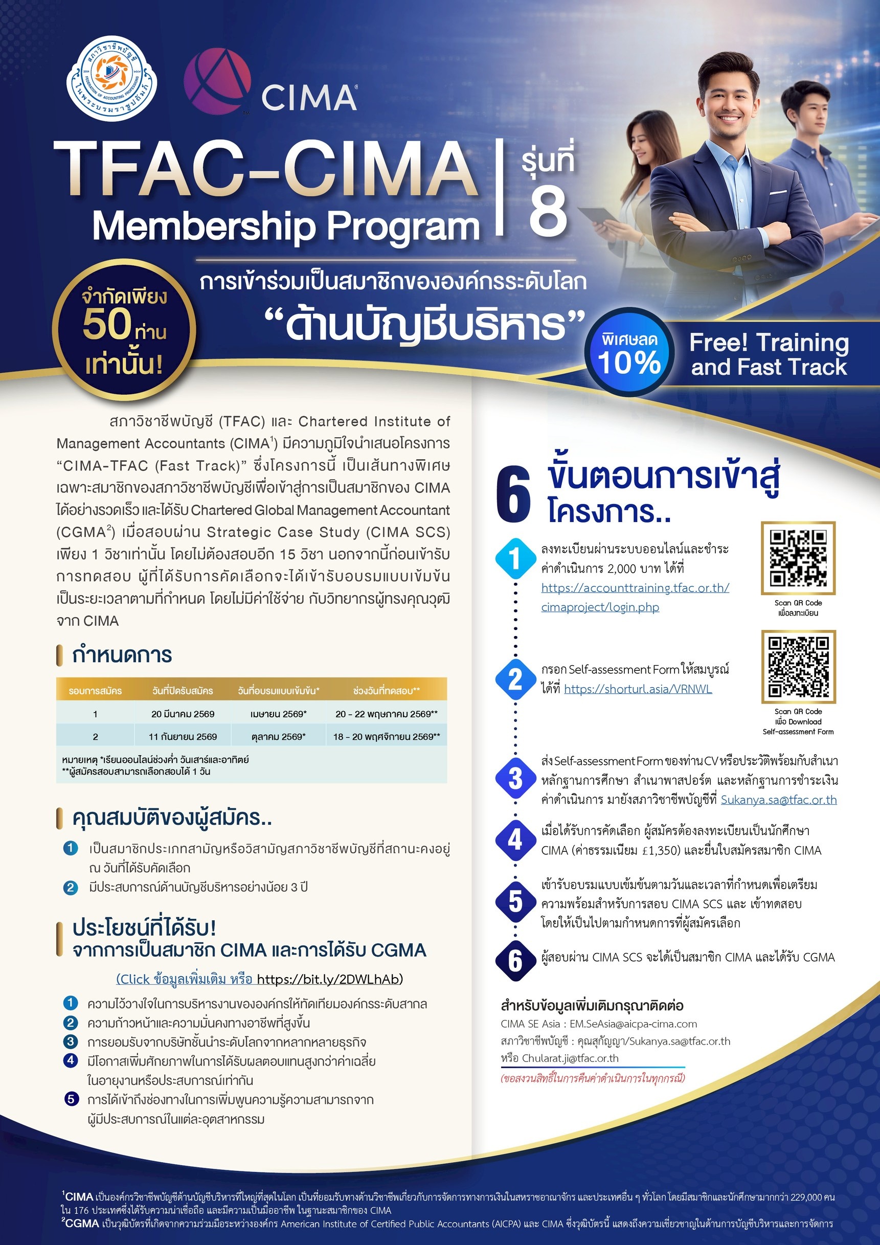 Group Line “TFAC- CIMA Membership Program” (สำหรับผู้ที่สนใจ/ต้องการติดตามข้อมูลที่เกี่ยวข้องของโครงการ TFAC- CIMA Membership Program)