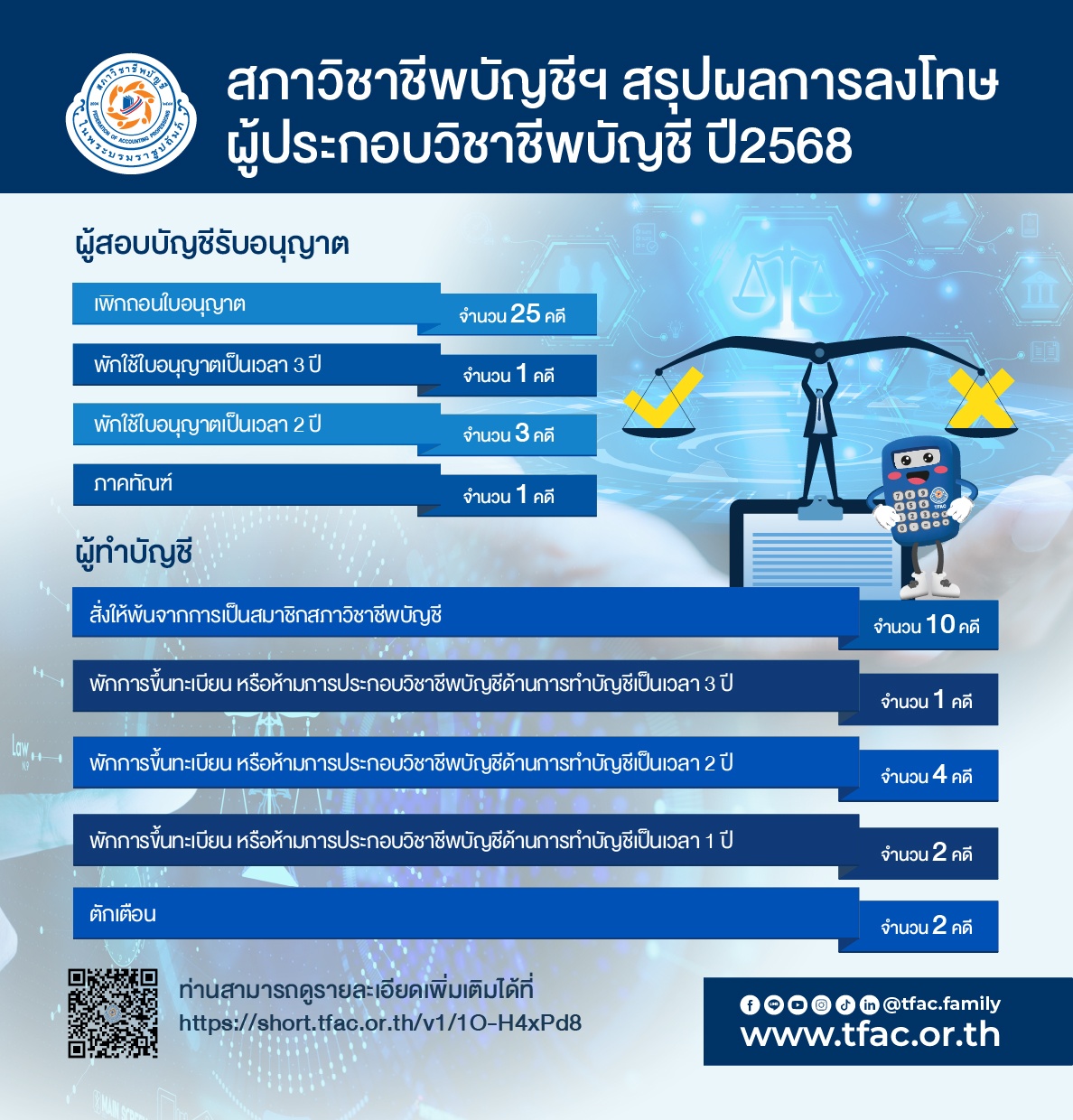 • สภาวิชาชีพบัญชีฯ สรุปผลการลงโทษผู้ประกอบวิชาชีพบัญชี ปี2568