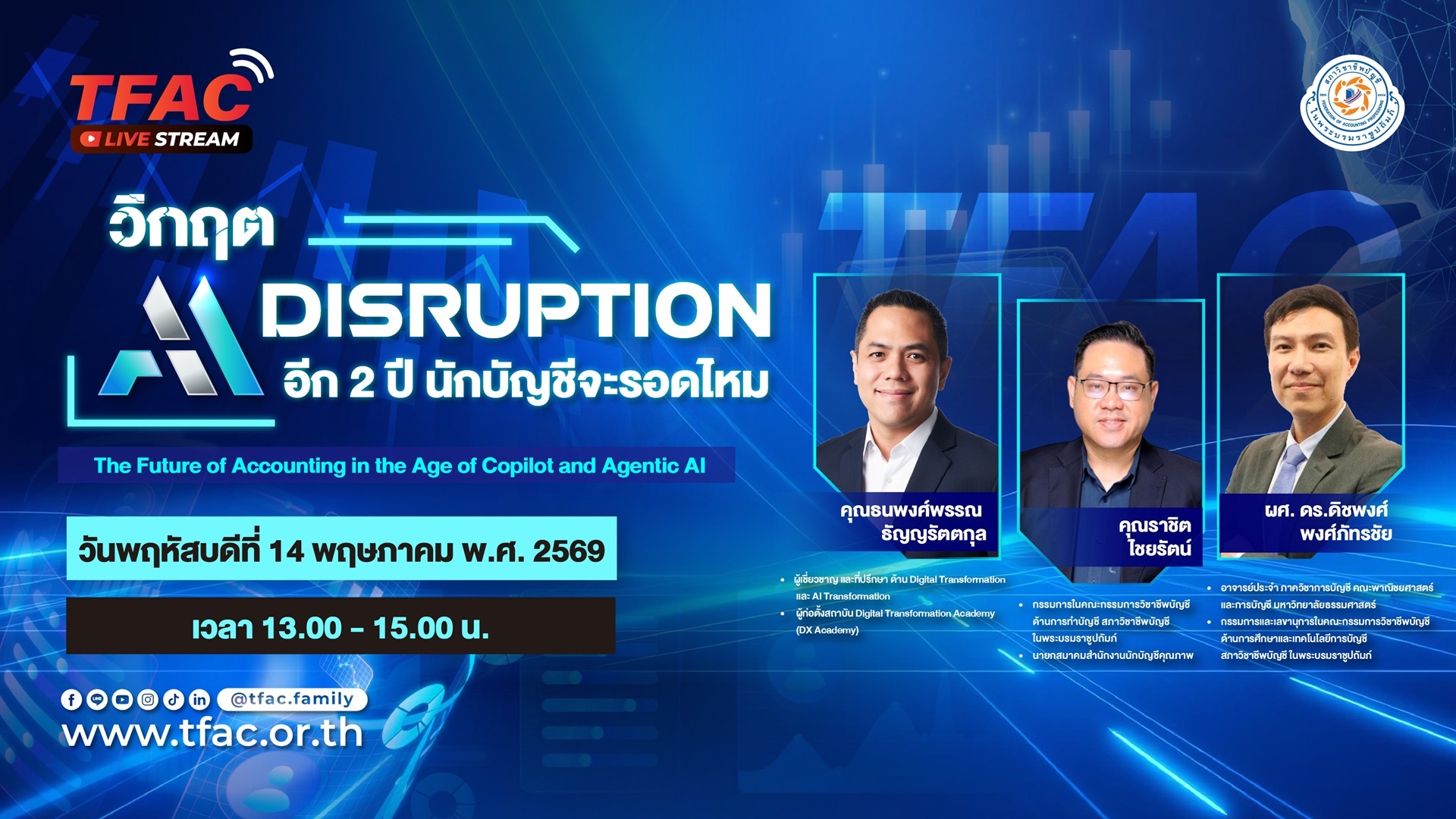 • สภาวิชาชีพบัญชีขอเชิญท่านร่วมรับฟัง การเสวนา วิกฤต Disruption อีก 2 ปี นักบัญชีจะรอดไหม